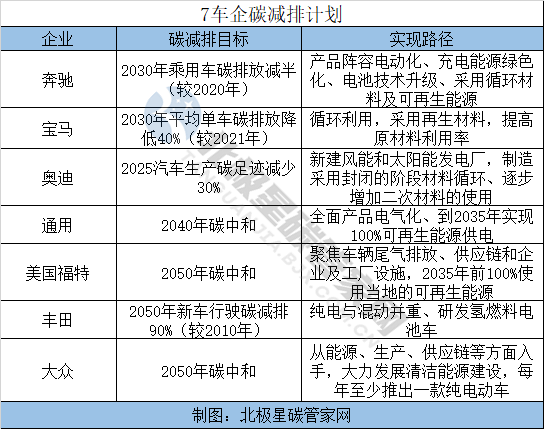 而大家普遍关心的BBA与四大车企,也已经提出了自己的碳减排目标与实现路径,北极星碳管家网做了简单汇总。